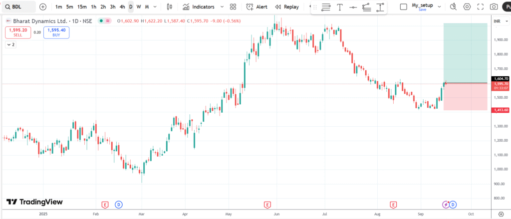 Bharat Dynamics Limited (BDL) presents a strong opportunity for a swing trading. As we know, swing trading has the potential for higher returns per trade, and unlike day trading, it does not require constant market monitoring throughout the day, making it ideal for everyone.